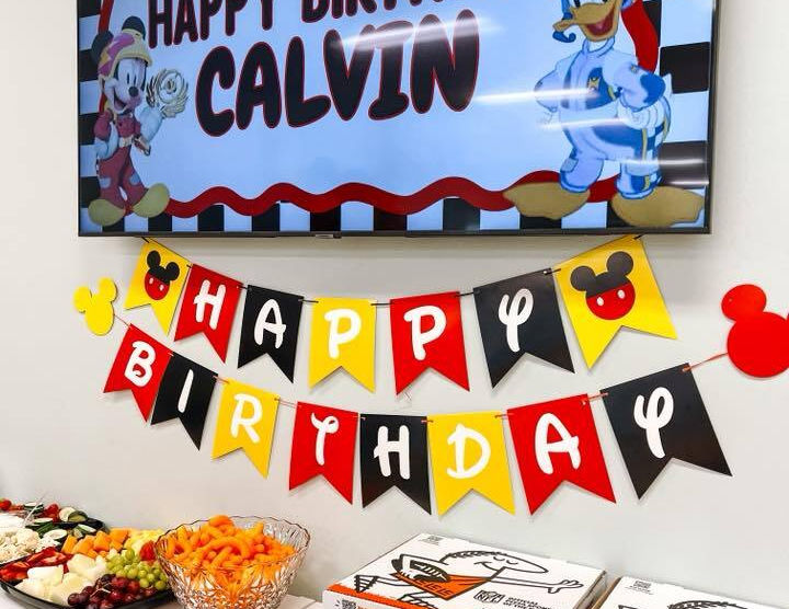 TV with custom birthday message to match theme
